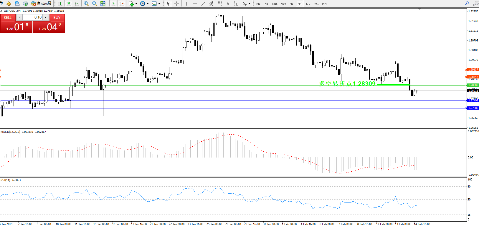 交易策略:1.28309下方看跌,目标1.274961.27089