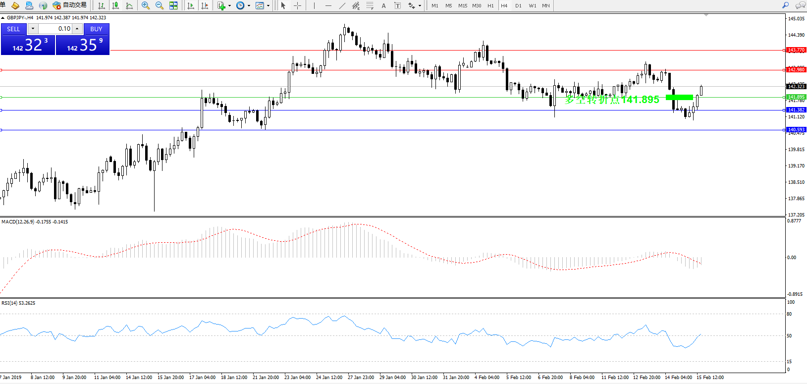 交易策略:141.895上方看涨,目标142.980143.770