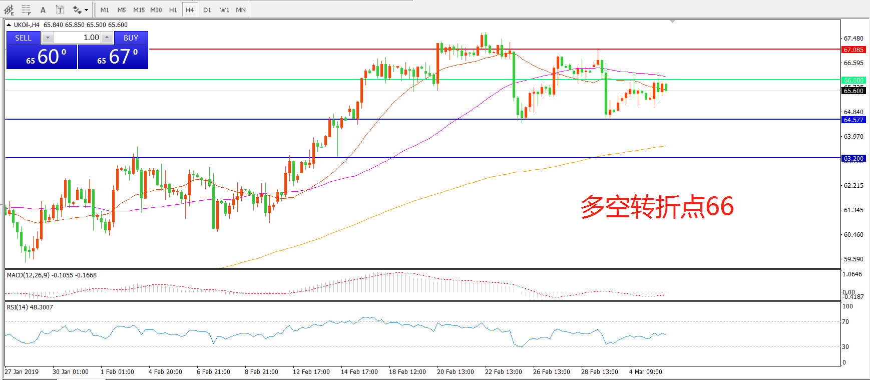 交易策略:在66.00之下看跌,目标64.50   63.00