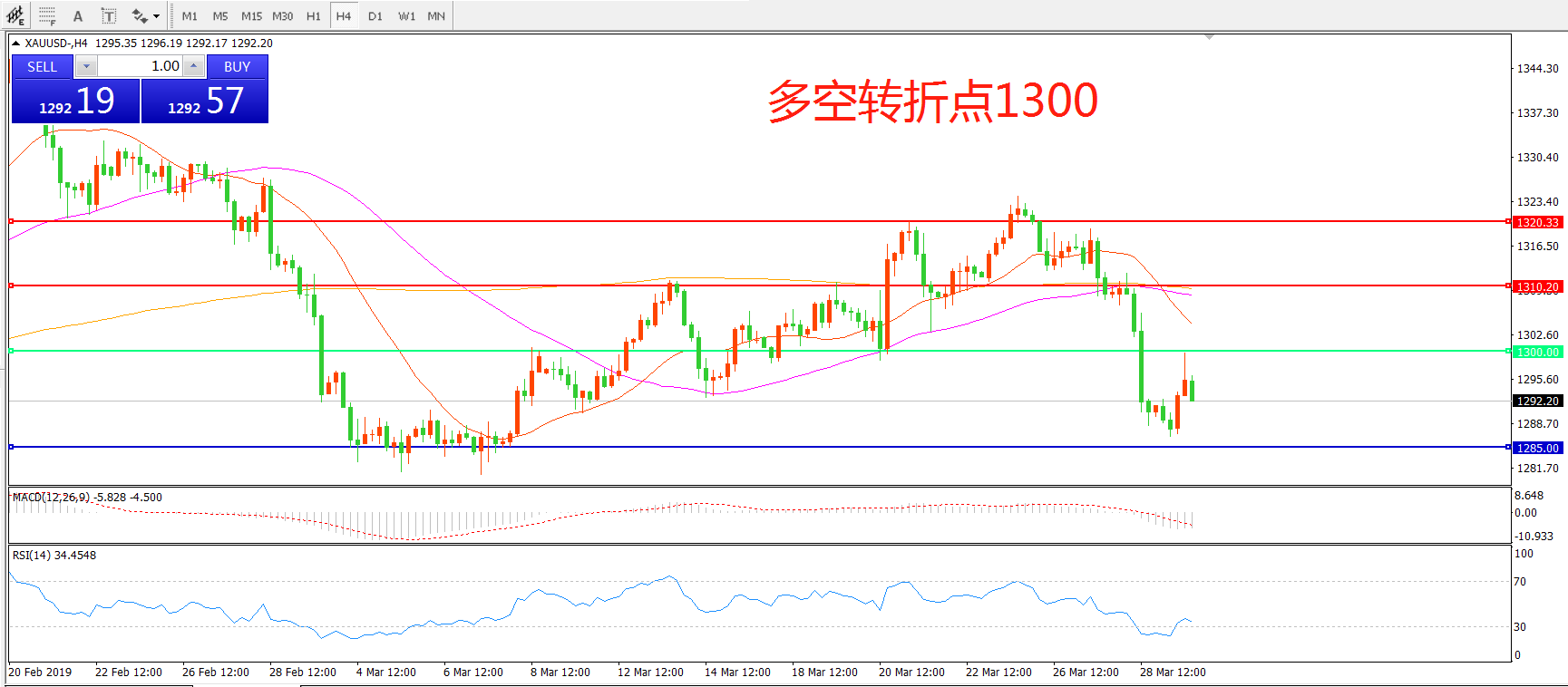 交易策略:在1300.00之下看跌,目标1285.00 1270.00