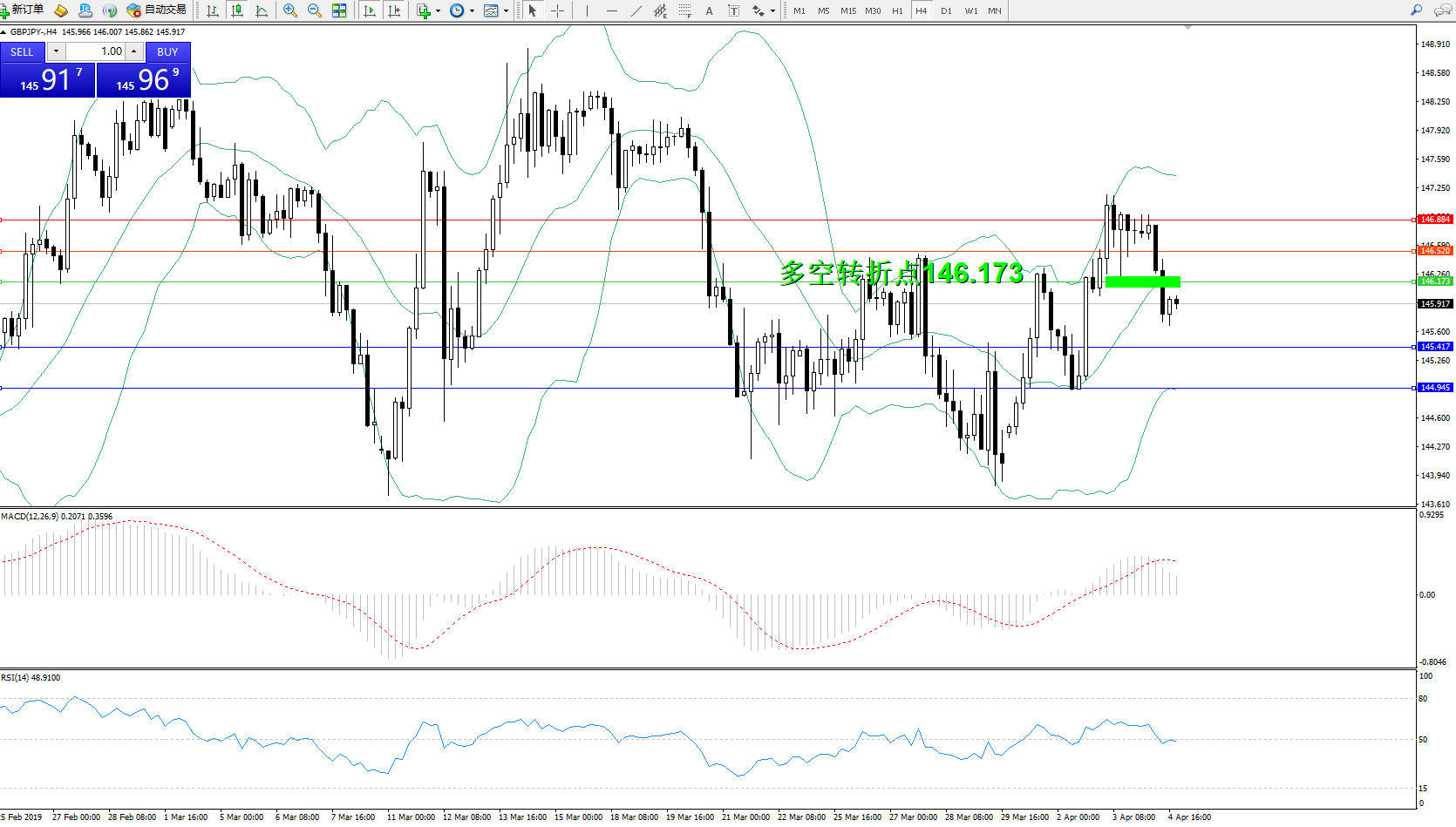 交易策略:146.173下方看跌,目标145.417、144.945