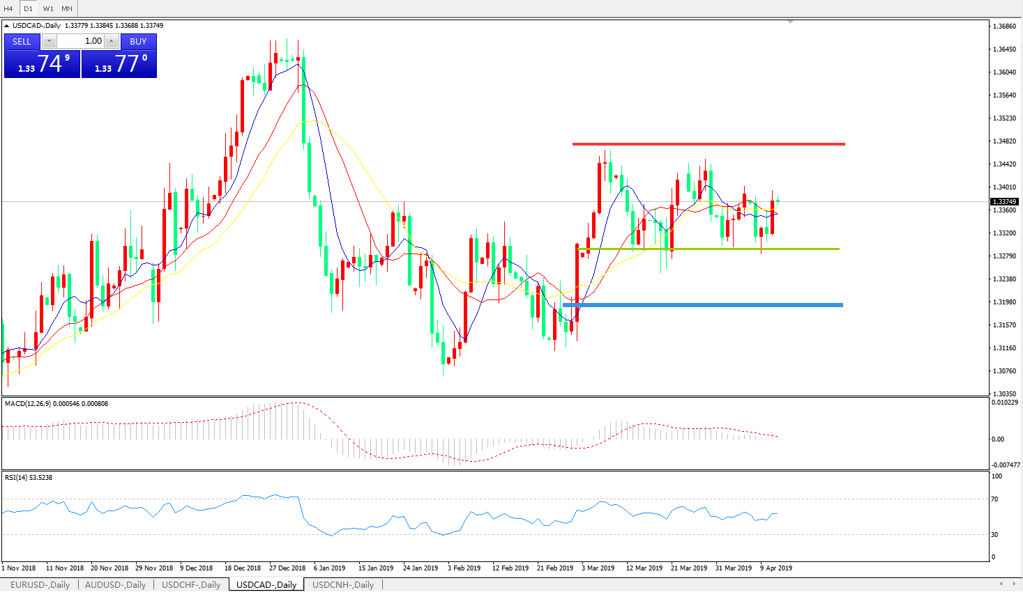 美元兑加元USDCAD    日线