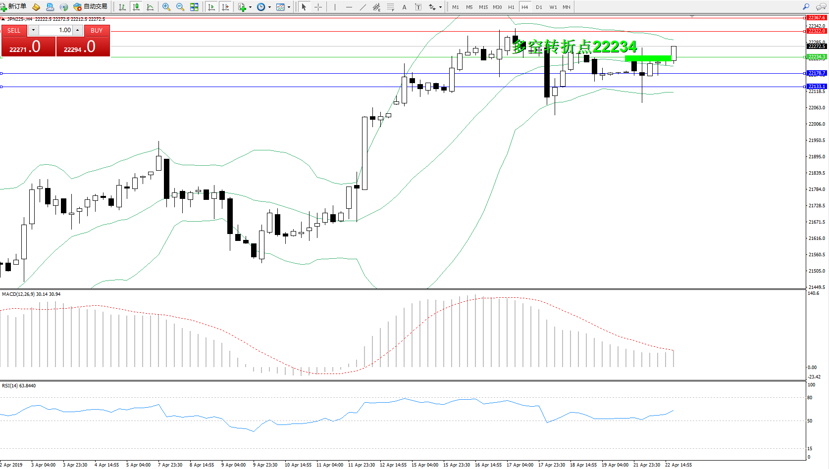 日经指数JPN225——4小时K线图: