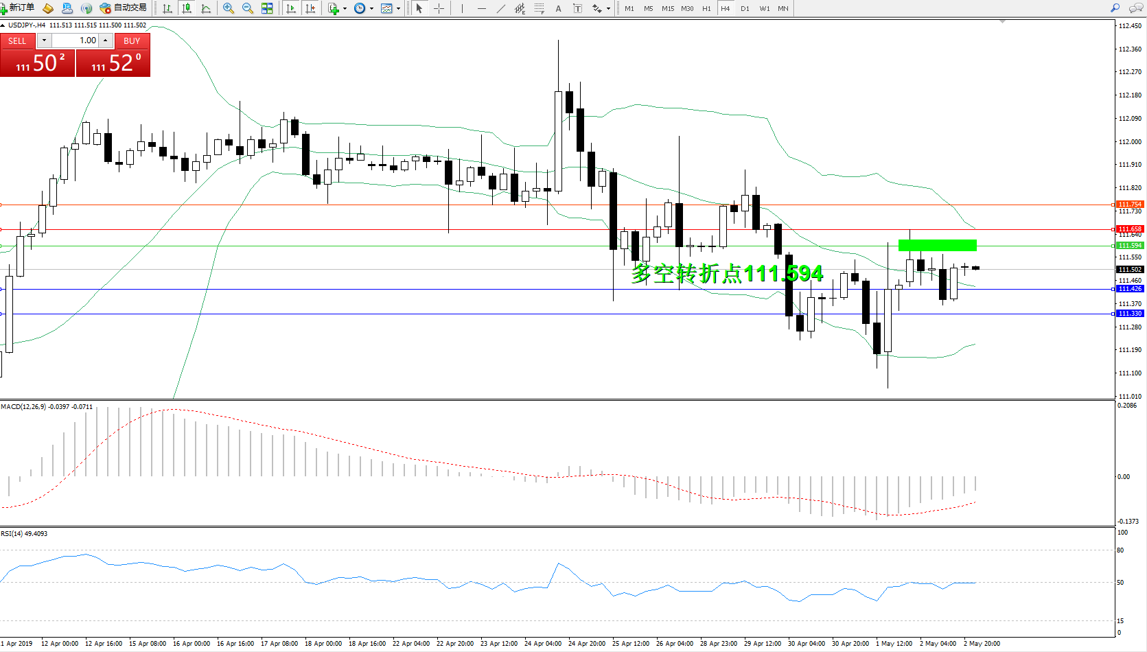 交易策略:111.594下方看跌,目标111.426、111.330