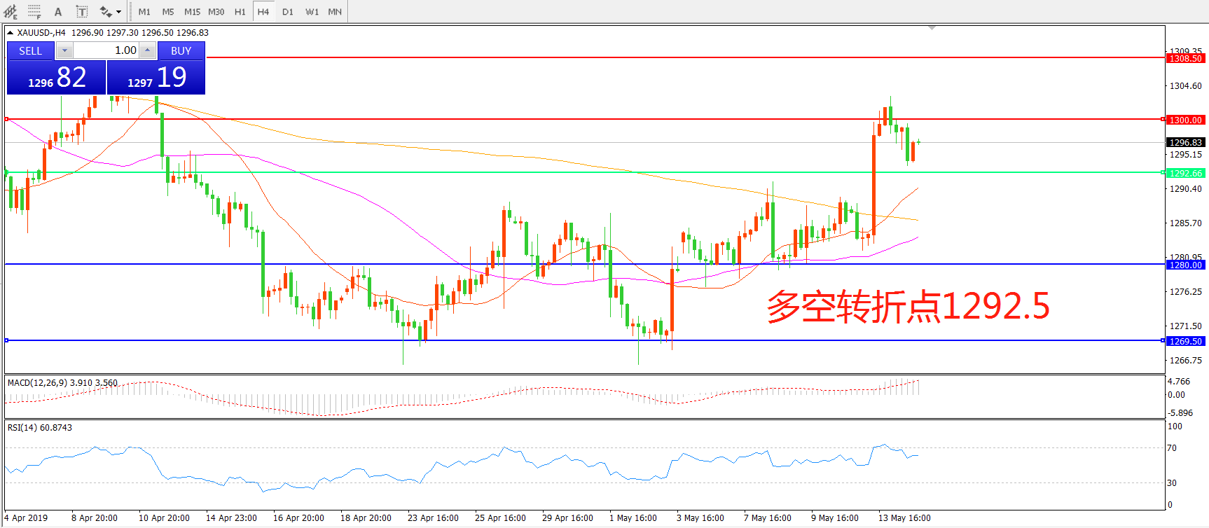 多空转折点:1292.50