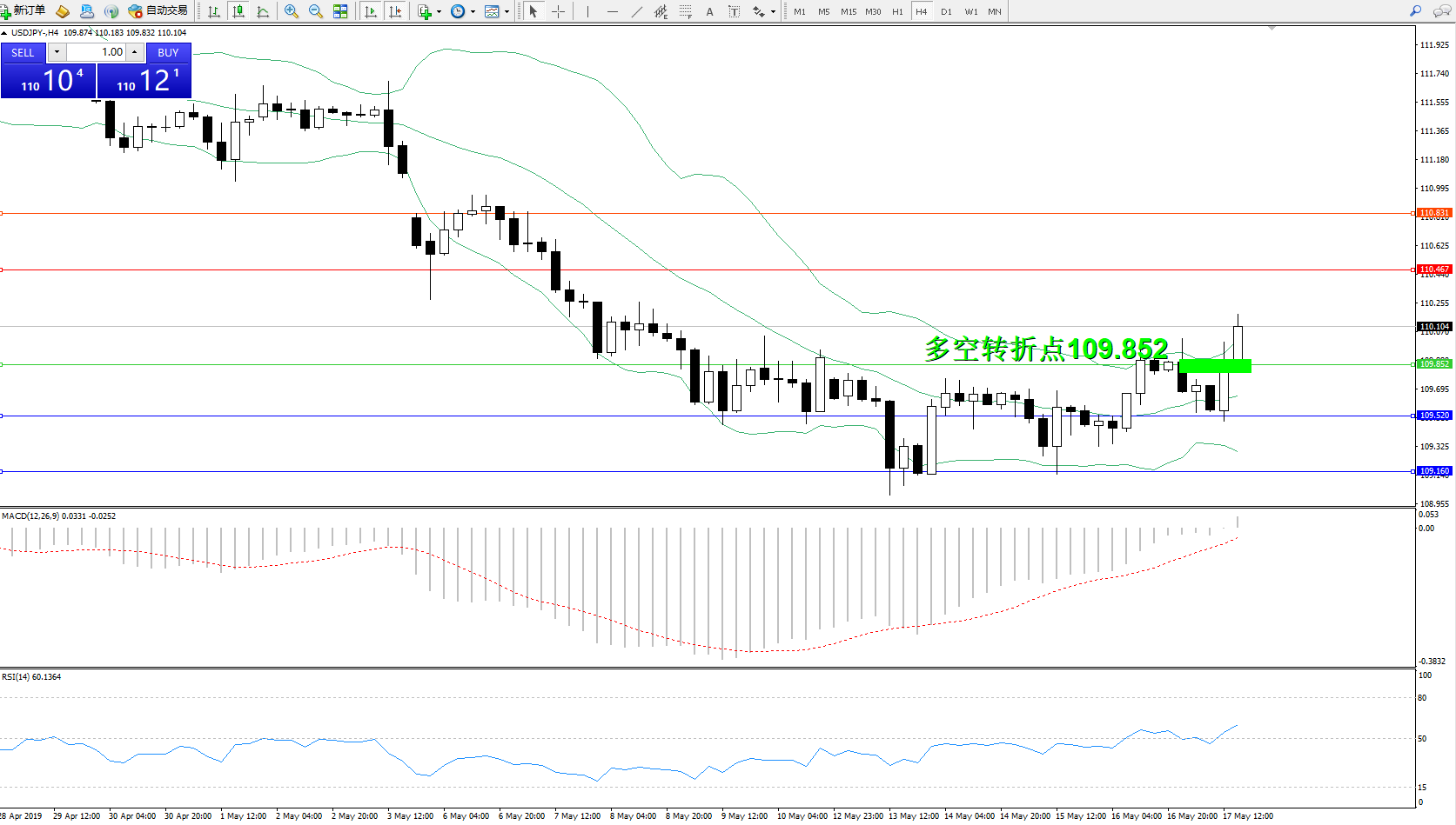 交易策略:109.852上方看涨,目标110.467110.831