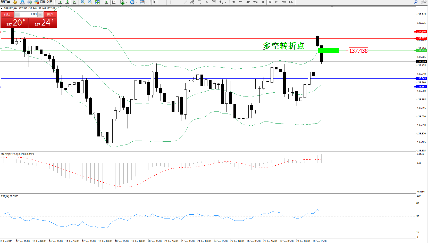 交易策略:137.438下方看跌,目标136.843、136.667