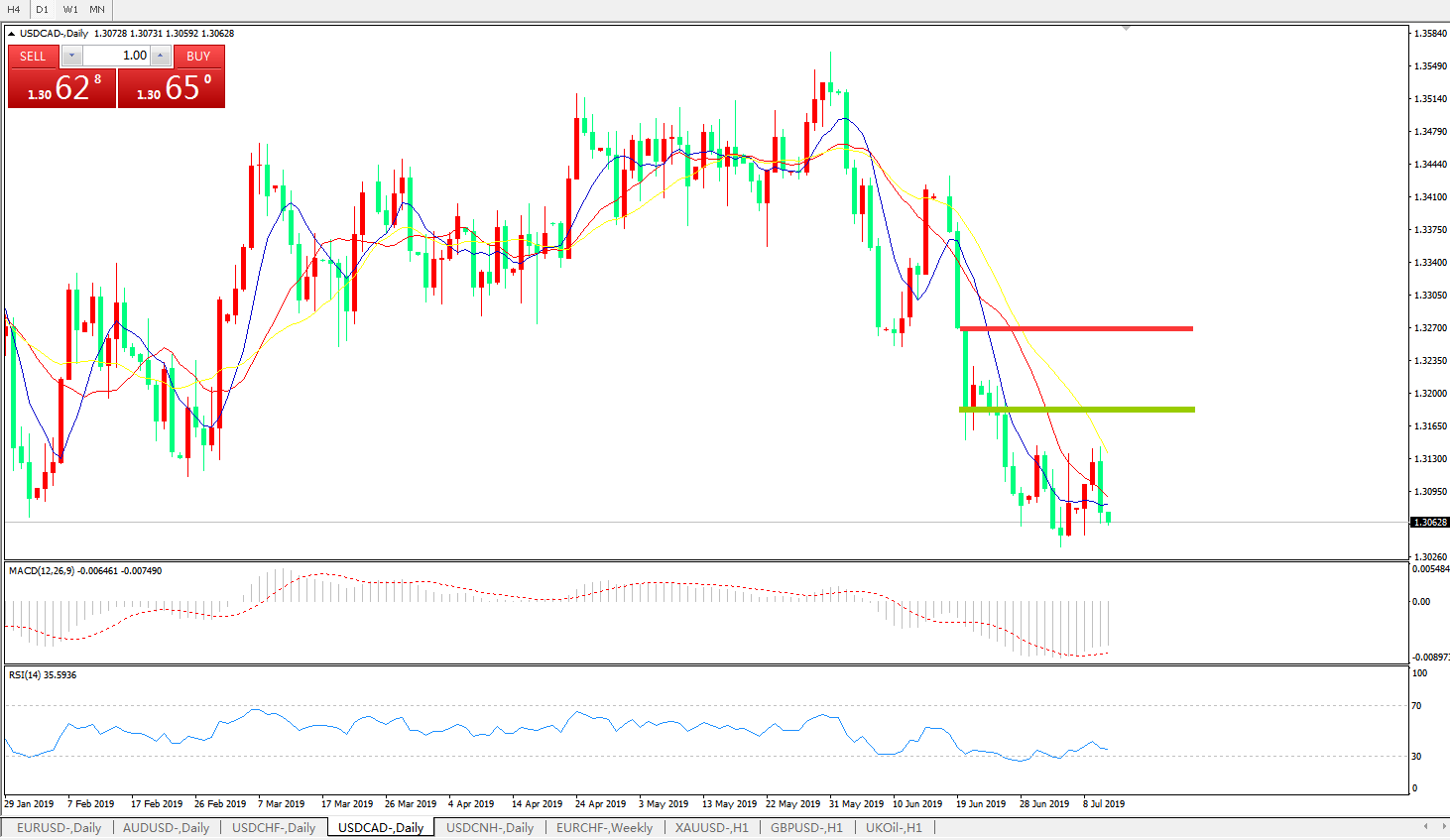 美元兑加元USDCAD    日线图: