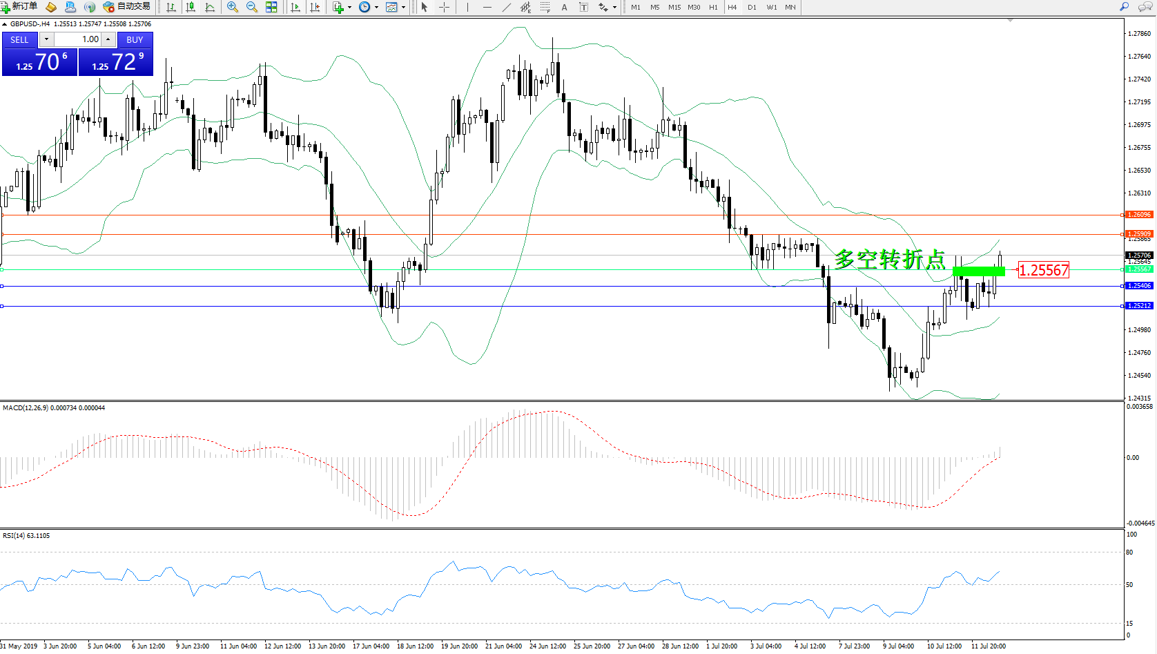 交易策略:1.25567上方看涨,目标1.25909、1.26096
