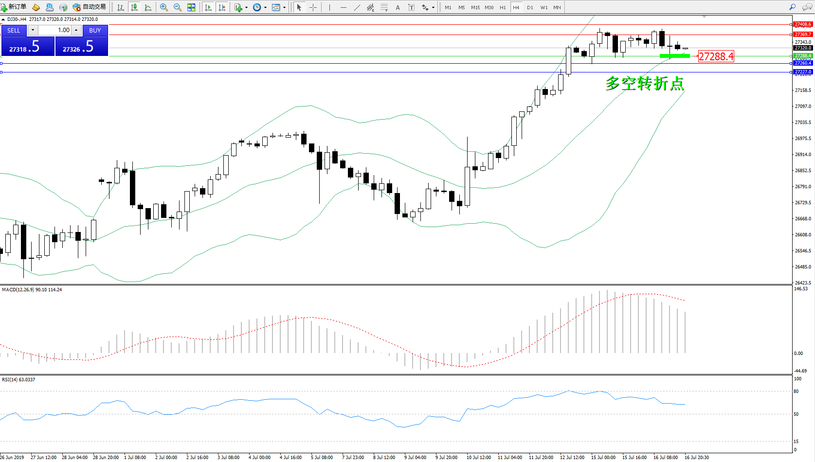 道琼斯指数716日(周二)收盘下跌23.50点,跌幅0.09%,报27335.63点。美国6月份零售销售增长0.4%。零售销售对照组强劲增长0.7%,表明二季度实际个人消费支出强劲。美国6月份强劲的零售销售数据支持了美联储主席鲍威尔的观点,即在紧张的劳动力市场支持经济扩张的情况下,消费者支出和财务状况依然健康。市场注意力转移到在美联储本月晚些时候举行政策会议之前一系列美联储官员针对货币政策的评论,市场预计美联储将在本次会议上降息,猜测的焦点在于降息幅度会有多大。