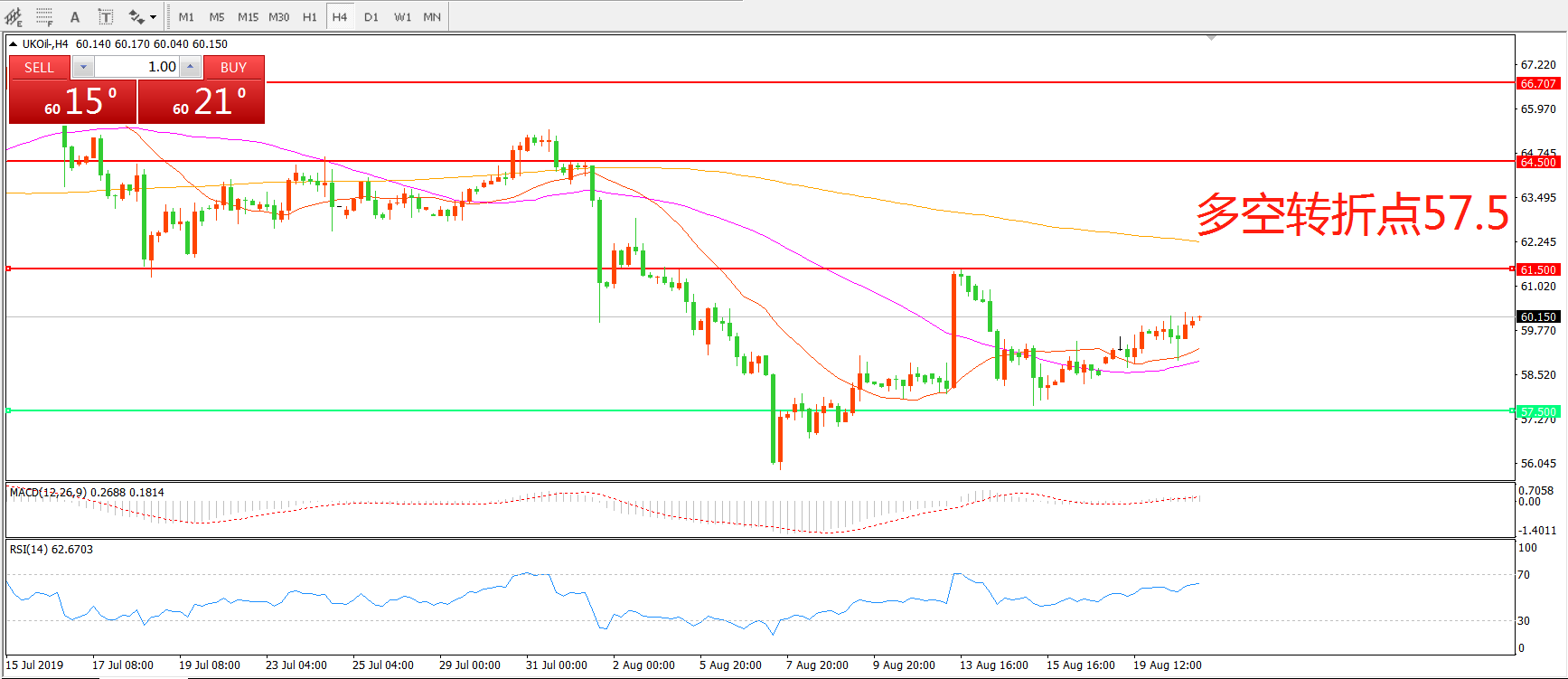 交易策略:在57.50之上看涨,目标61.50   64.50