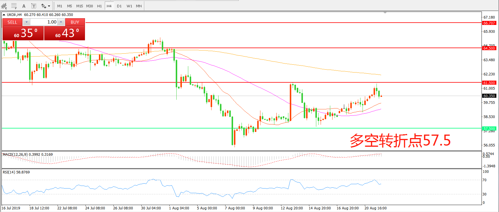 交易策略:在57.50之上看涨,目标61.50   64.50