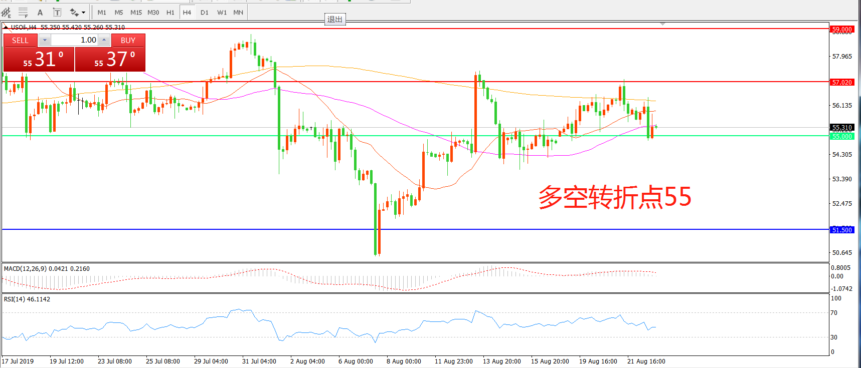 多空转折点:55.00