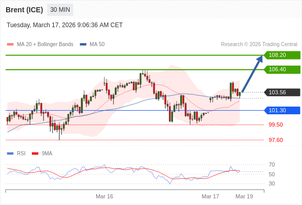 在 101.30 之上,看涨,目标价位为 106.40 ,然后为 108.20 。