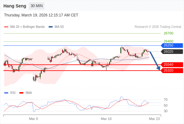 在 26250 之下,看跌,目标价位为 25540 ,然后为 25320 。