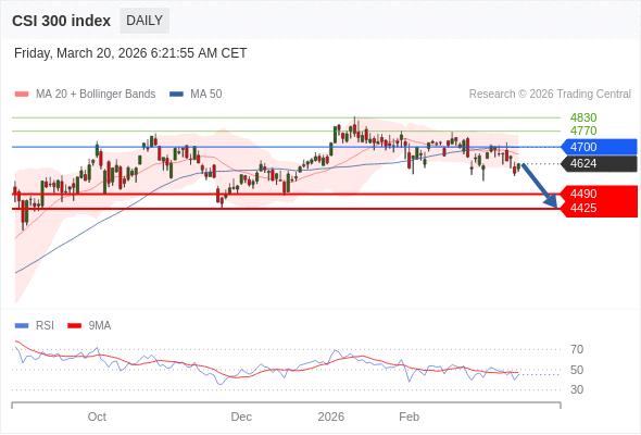 沪深300指数 短线: 短期调整。