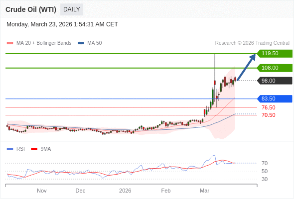 在 83.50 之上,看涨,目标价位为 108.00 ,然后为 119.50 。