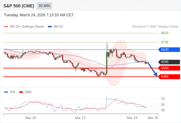 在 6690 之下,看跌,目标价位为 6550 ,然后为 6485 。