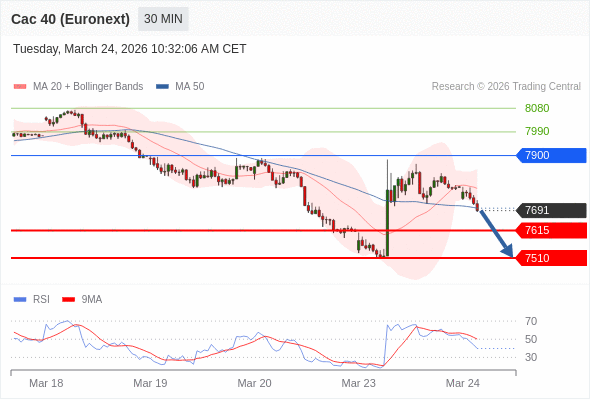 在 7900 之下,看跌,目标价位为 7615 ,然后为 7510 。