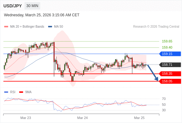 在 159.15 之下,看跌,目标价位为 158.35 ,然后为 158.05 。