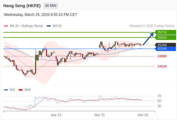 在 25140 之上,看涨,目标价位为 25530 ,然后为 25710 。