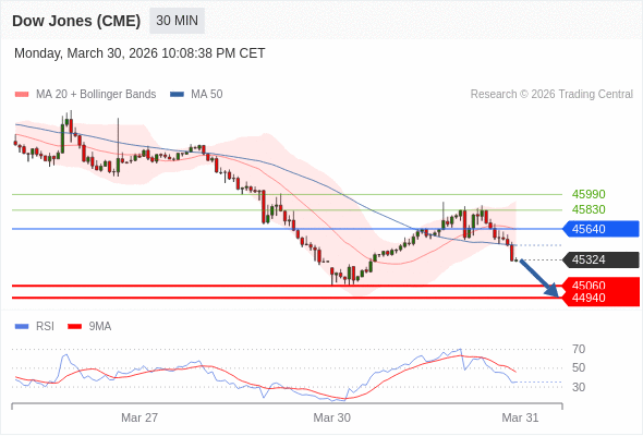 交易策略: 在 45640 之下,看跌,目标价位为 45060 ,然后为 44940 。