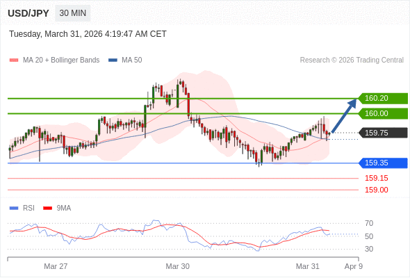 在 159.35 之上,看涨,目标价位为 160.00 ,然后为 160.20 。