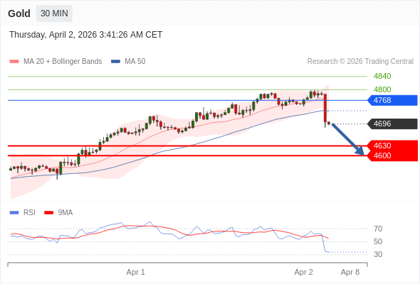 在 4768 之下,看跌,目标价位为 4630 ,然后为 4600 。
