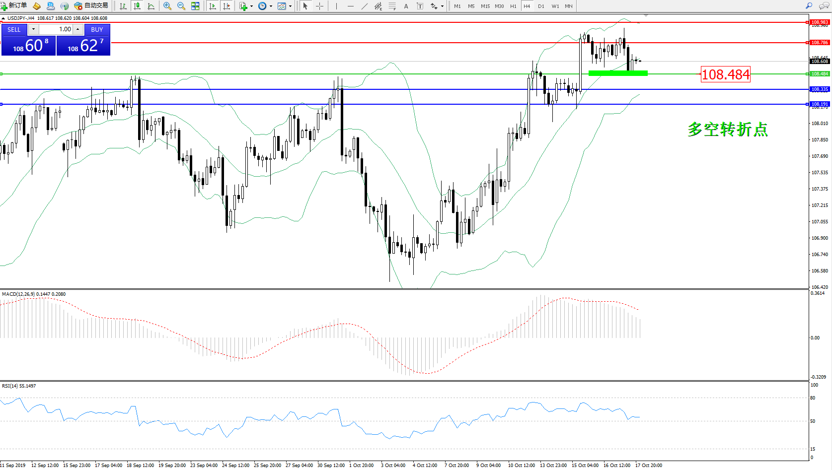交易策略:108.484上方看涨,目标108.786108.983