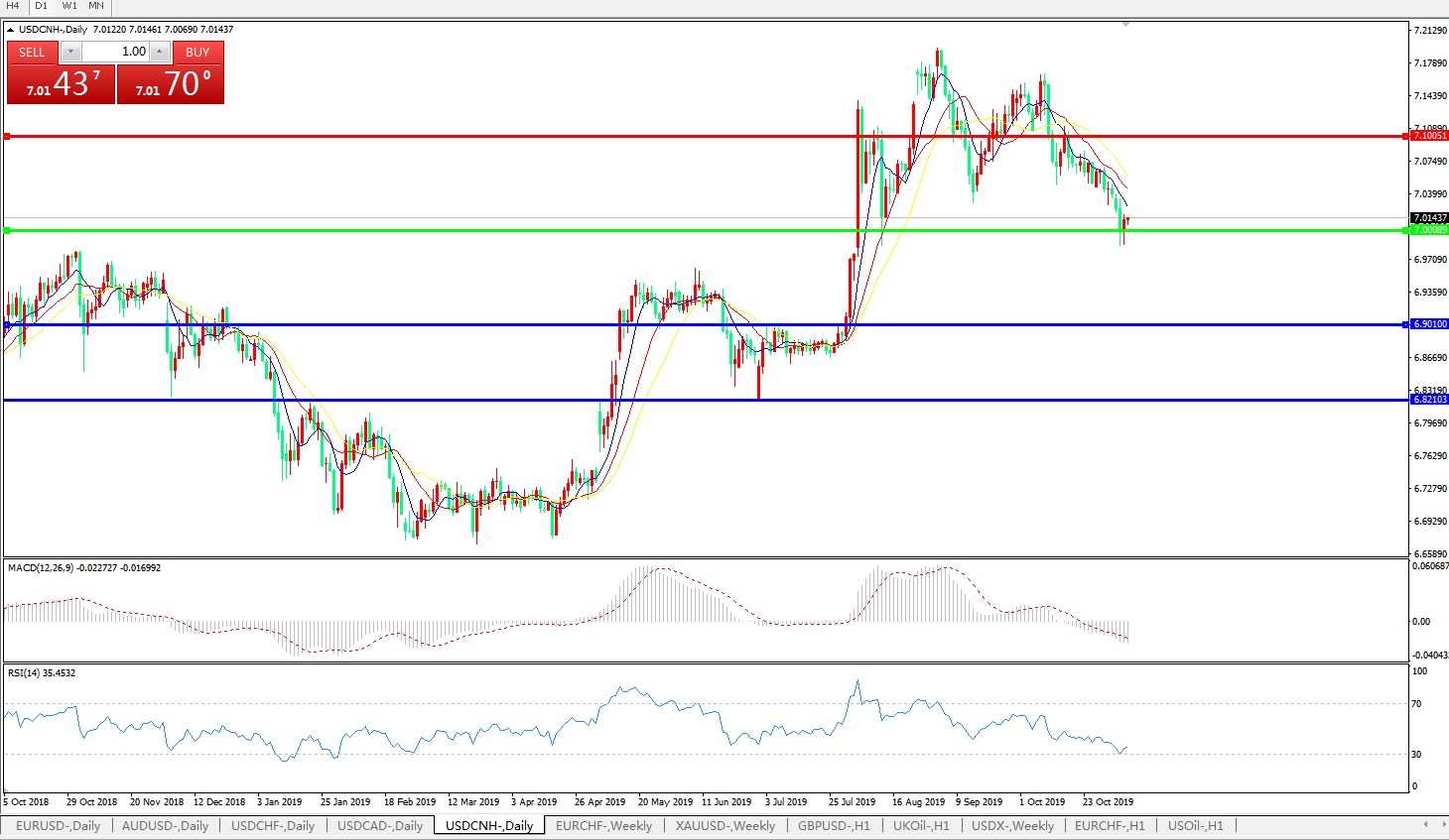交易策略: 在7.0000之上,看涨,目标价位为7.1000,然后为7.2000。
