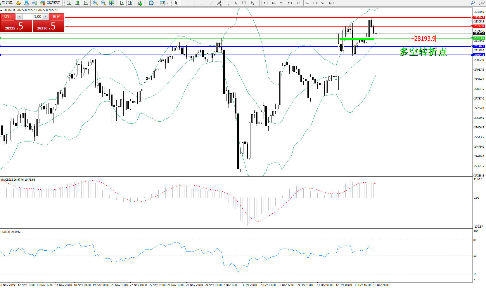 道琼斯指数1216日(周一)收盘上涨100.40点,涨幅0.36%,报28235.82点。因市场预计美中达成的第一阶段贸易在年底前夕将缓解投资者面临的一个重要风险。,美国制造业和服务业数据显示经济强劲,也提振了市场信心。虽然在过去20个月贸易争端中加征的关税很多维持不变,但初步协议标志着中美关系的解冻。