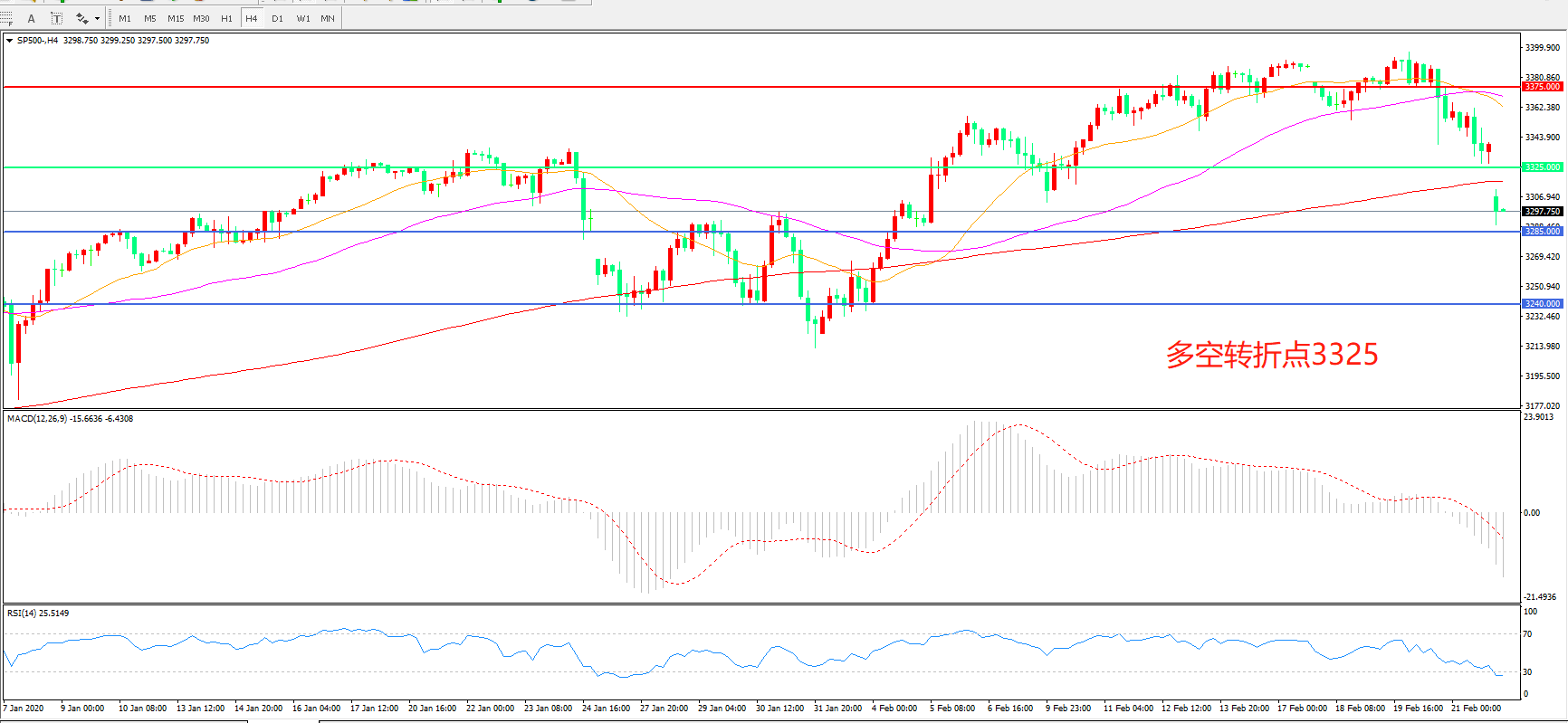 多空转折点:3325.00