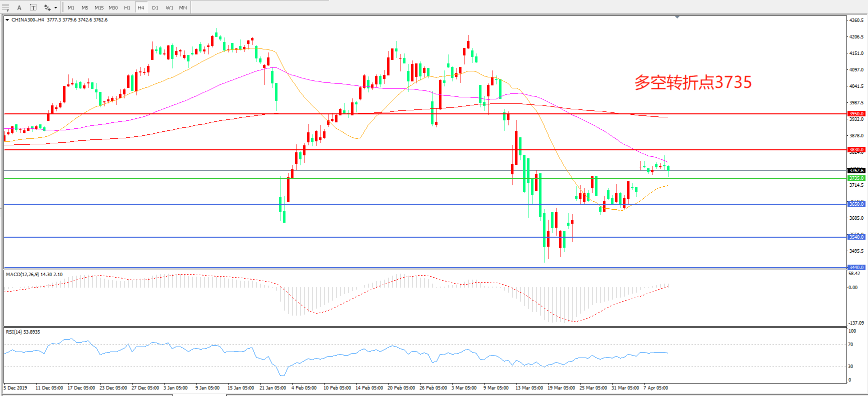 沪深300  CHINA 300   4小时图