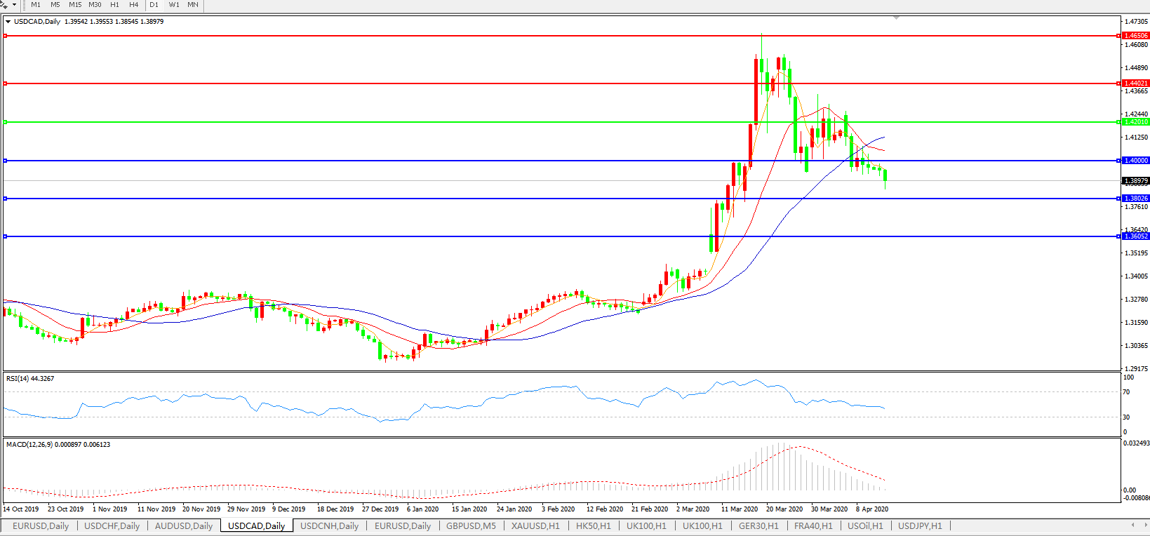 美元兑加元USDCAD    日线图: