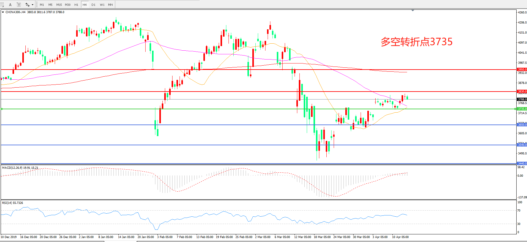 沪深300  CHINA 300   4小时图