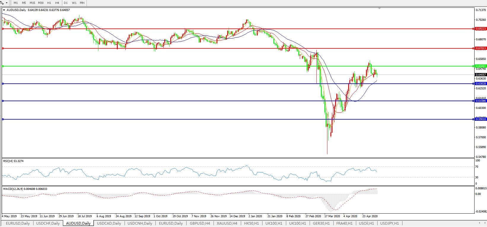 澳元兑美元AUDUSD 日线图: