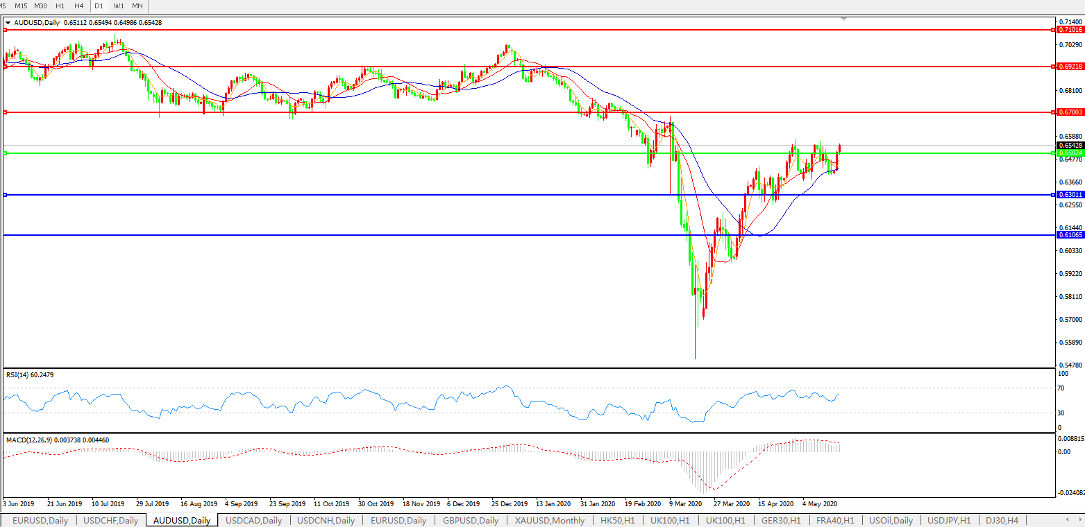 交易策略:0.6500上方看涨,目标0.6700、0.6920