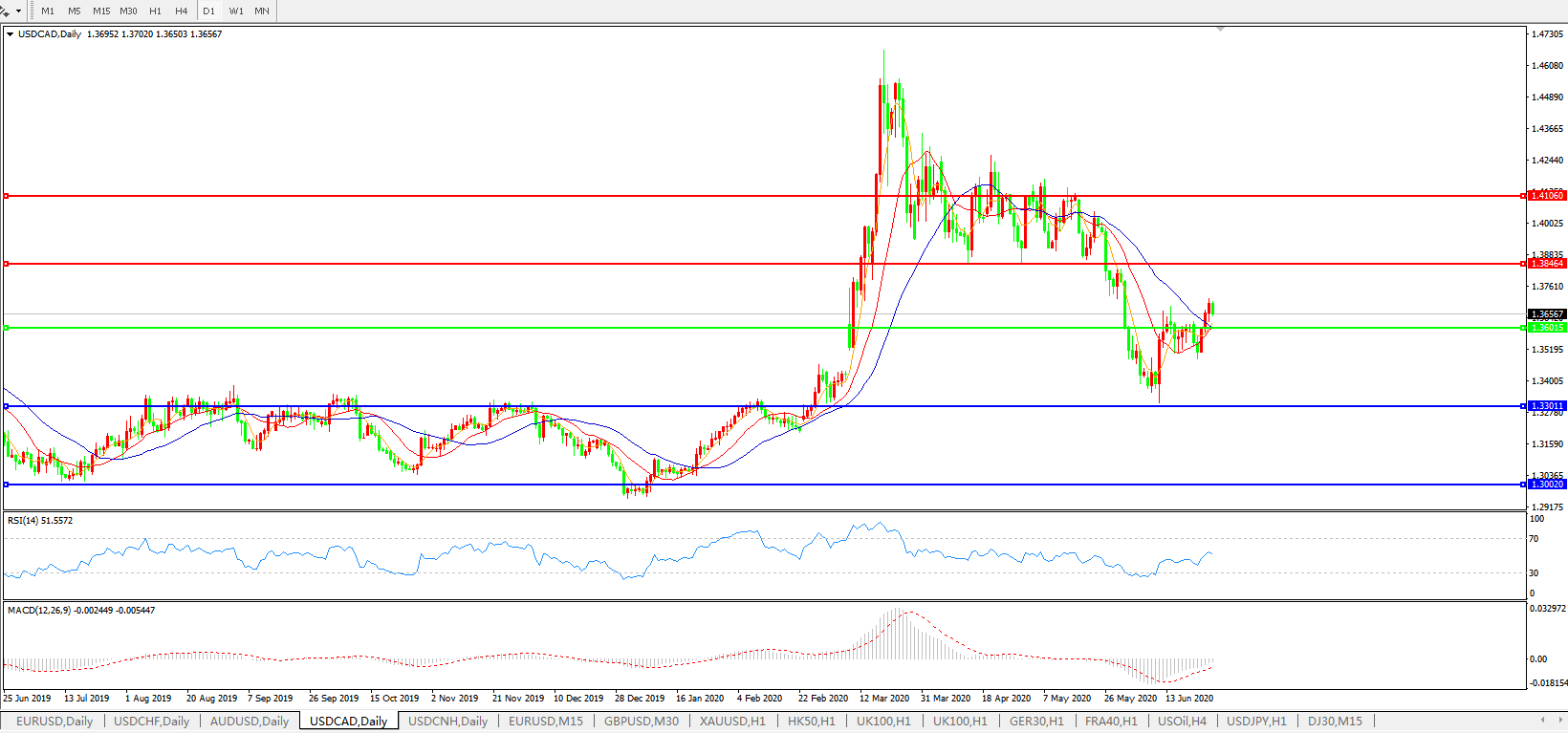 美元兑加元USDCAD    日线图: