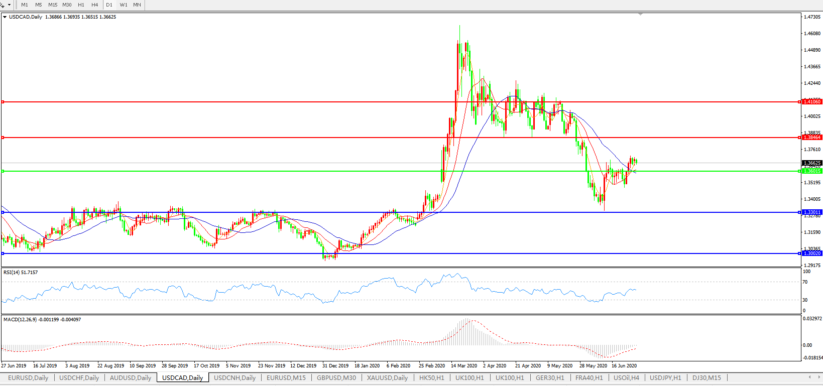 备选策略:在1.3600之下,看跌,目标价位为1.3300、1.3000
