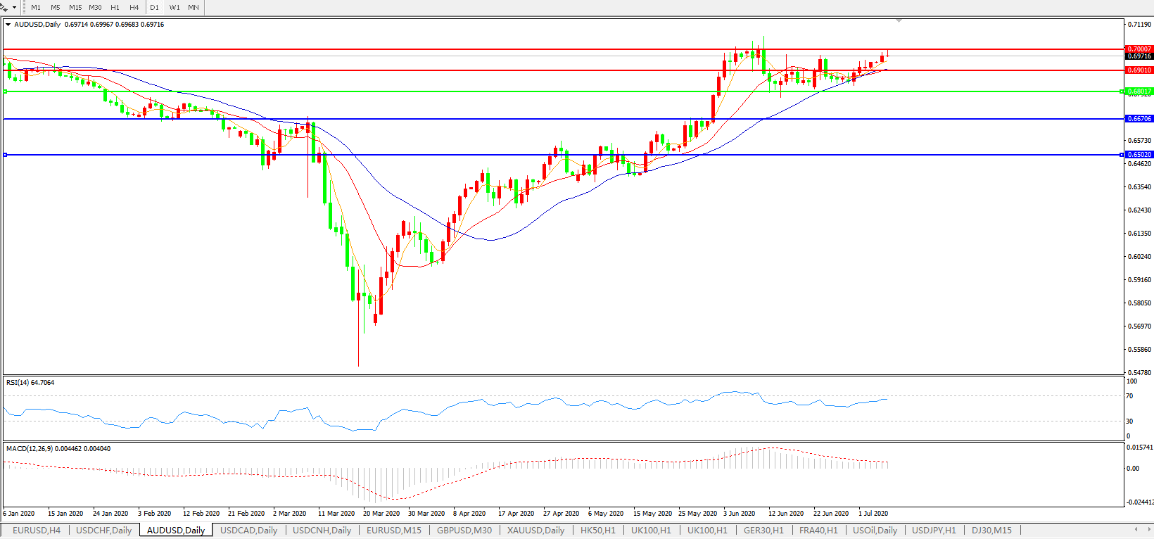 澳元兑美元AUDUSD    日线图: