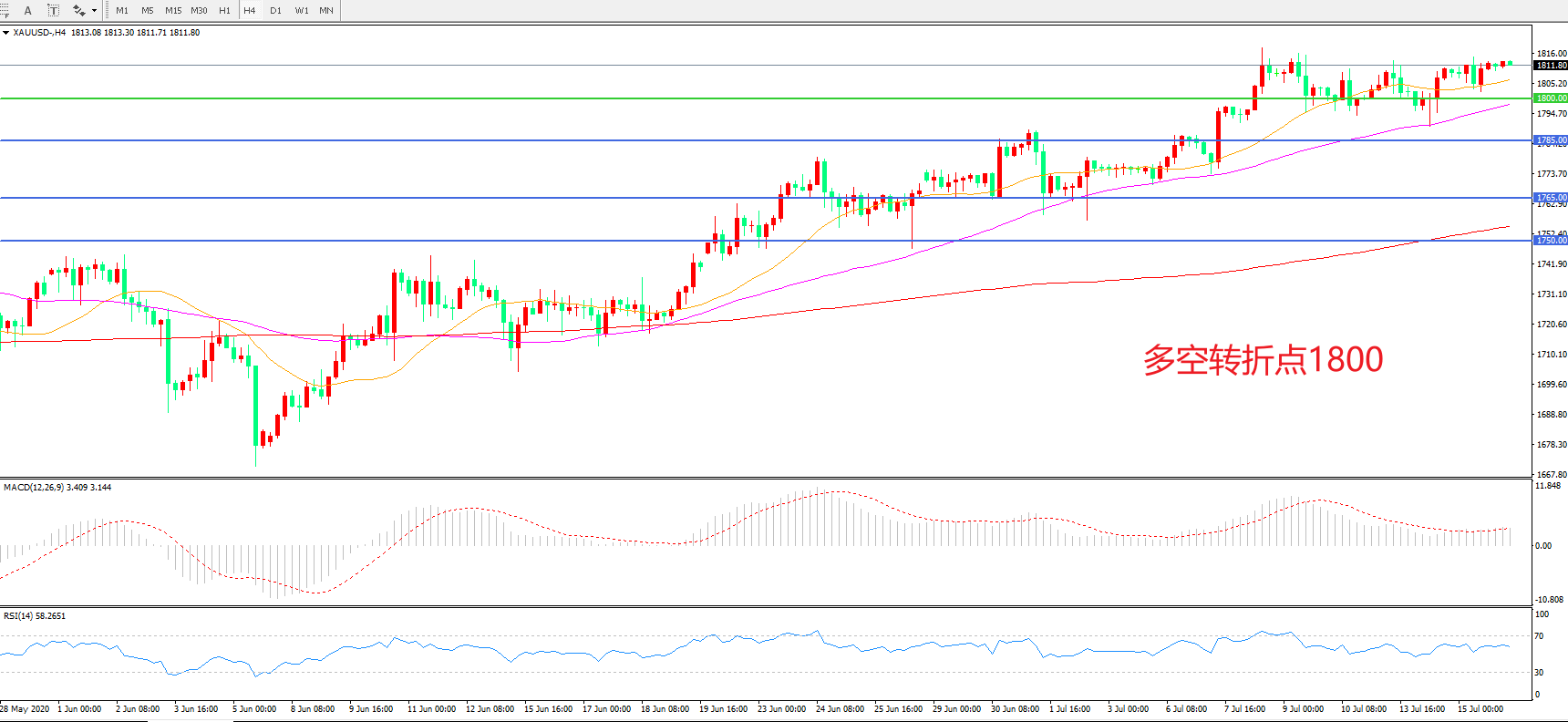 多空转折点:1800.00