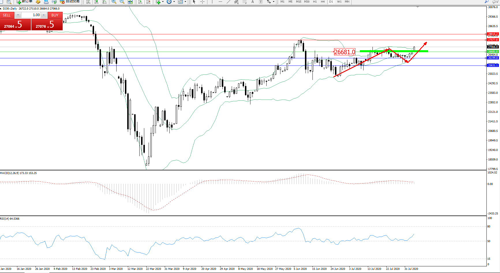 道琼斯指数8月5日(周三)收盘上涨373.00点,涨幅1.39%,报27201.52点。美国7月“小非农”ADP就业人数远不及预期。美国总统大选影响开始渗入利率市场。美国6月ADP就业数据从236.9修正为431.4万,但美国7月“小非农”ADP就业人数远不及预期,就业数据公司ADP总裁:就业市场的复苏在7月有所放缓;我们已经看到经济放缓对各个规模和行业的企业都产生了影响。美国将发售创纪录的1120亿美元的三年、十年和三十年期国债,美联储前主席耶伦表示,美联储很可能在未来几个月采取更多措施。美联储副主席克拉里达表示,高频数据显示7月经济增速放缓,新的财政方案可能会提供重要的支持,在7月联邦公开市场委员会会议上讨论了框架审查。
