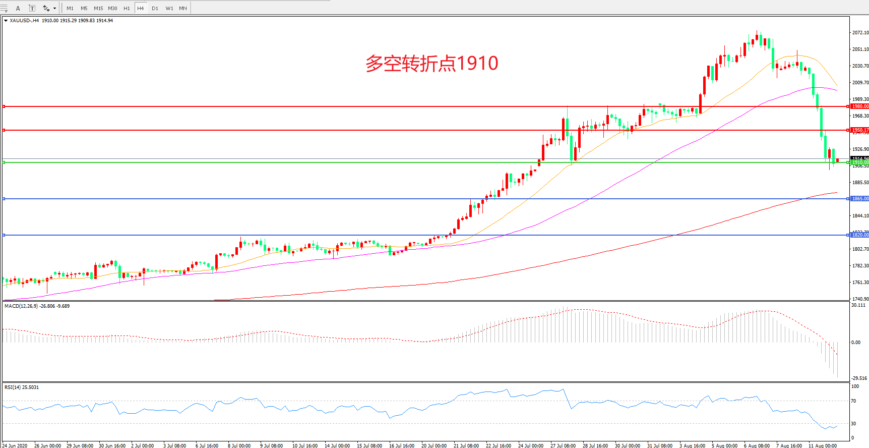 备选策略: 在1910.00之上看涨,目标1950.00   1980.00