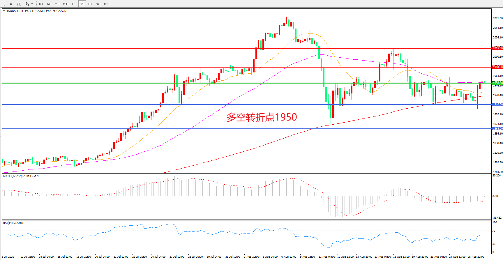 现货黄金XAU/USD    4小时图