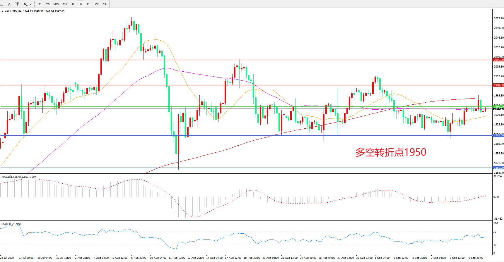 多空转折点:1950.00