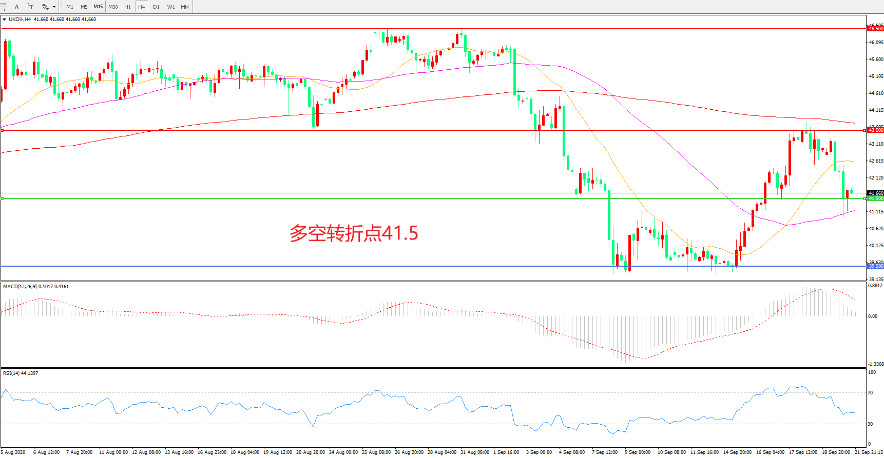 交易策略: 在41.50之上看涨,目标43.50 46.50