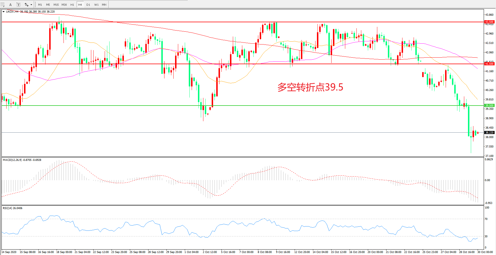 周四(10月29日),欧洲多地新冠疫情重燃,多国宣布更严格的疫情管理,严重冲击了原油需求前景,同时OPEC成员国利比亚在四周内将提升产量至100万桶/日,布伦特原油再度陷入暴跌,收报38.26美元/桶,创五个月新低。