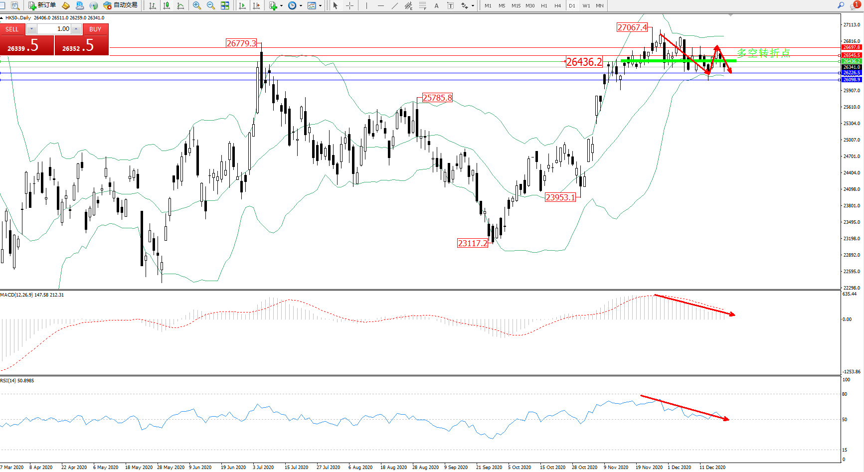 恒指HK50 ——日K线图显示: