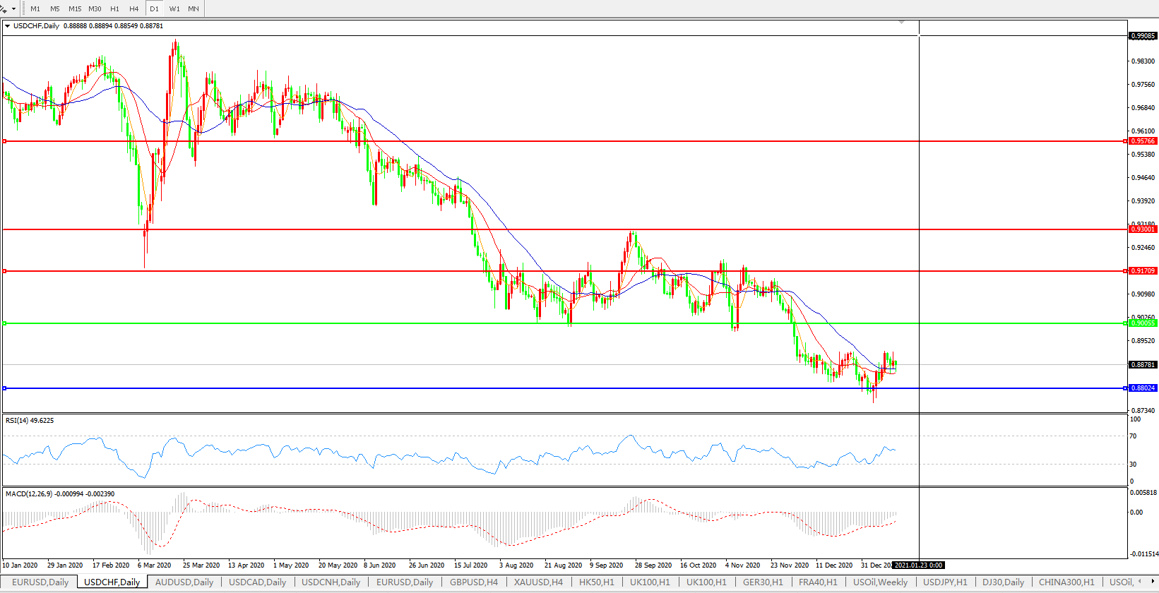美元兑瑞郎USDCHF 日线图: