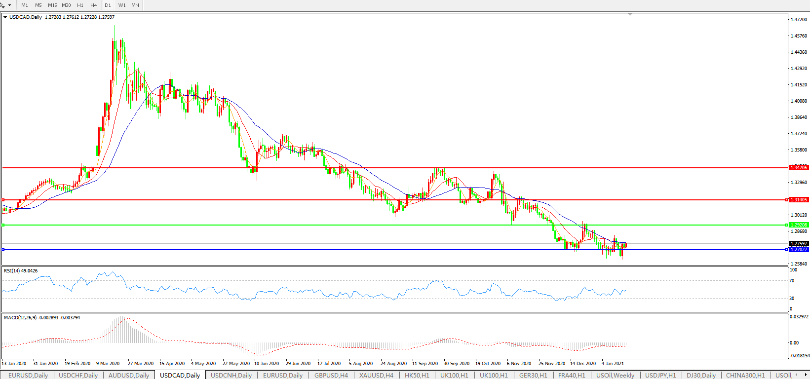 美元兑加元USDCAD 日线图: